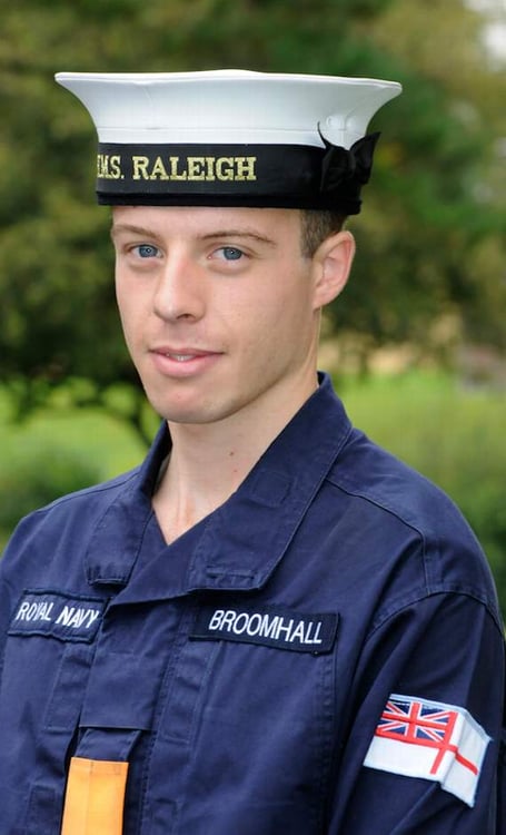 21-year-old trainee engineering technician Sam Broomhall arrived at the Royal Navy’s training establishment in Cornwall, last July. He has since undergone a 10 week intensive training course to turn him from a civilian into a sailor. The course culminates with the passing-out-parade when the successful recruits march out in front of their family and friends.