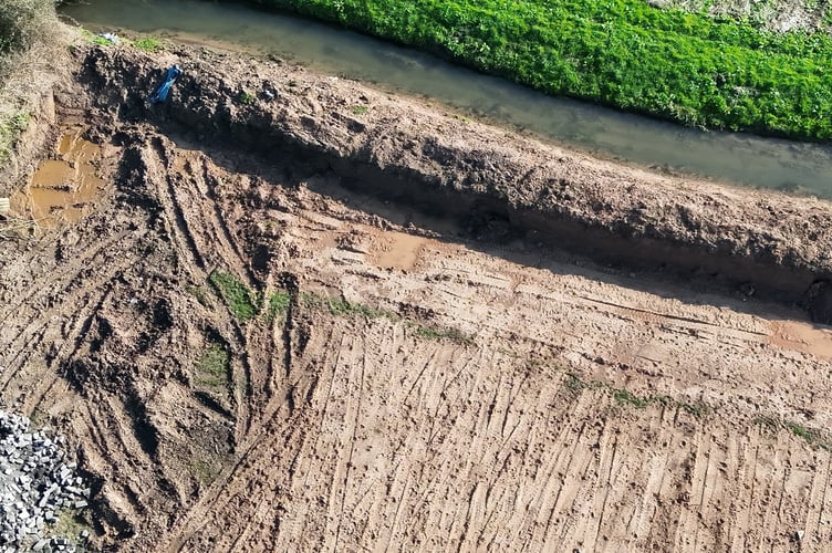 A drone shot of the area excavated and damaged at the reen embankment (NRW)