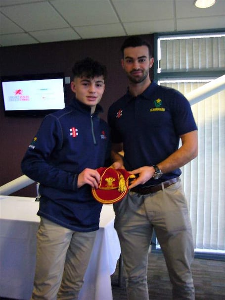 Jeremy, a professional player at Glamorgan, presented Joe with a cap for having represented Wales Under-15s last summer.