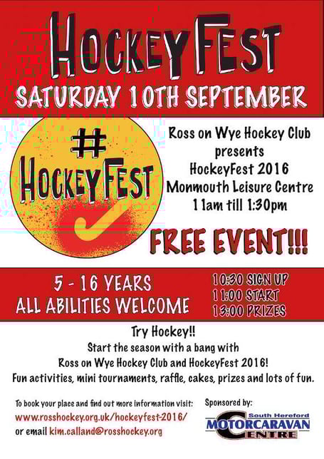 HockeyFest will take place on 10th September at Monmouth Leisure Centre. Registration is from 10.30am with a prompt start at 11am, and the day will be finishing with a prize giving ceremony at 1pm.